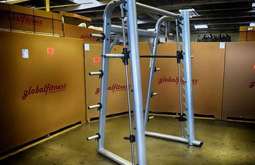 A Smith Machine is, and can best be described as follows: A Smith Machine is a plate-loaded piece of exercise equipment comprised of two vertical posts with an open front configuration and a barbell, which is usually counterbalanced, fixed within two steel rails that have several bar hooks at varying heights. A Smith Machine only allows vertical movements once the bar is unhooked, and it is designed to assist in safely performing weight training exercises such as Squats, Lunges, Deadlifts, Presses, Rows, and many others, by allowing the weight to be secured at any point during an exercise with a twist of the wrist to re-hook the bar.